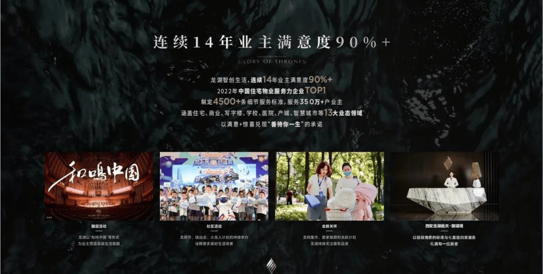 龙湖集团深耕西安17载,营业遍及全国100余座城市,是业内的豪宅专家、园林大师,